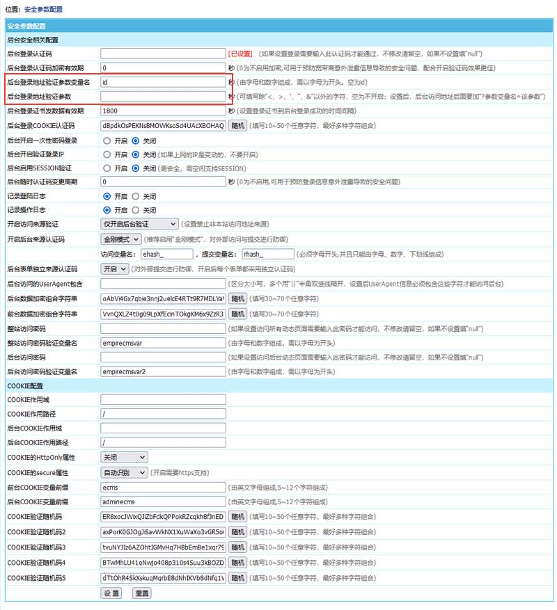| 設(shè)置后臺登錄地址驗證參數(shù) |