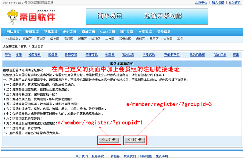 帝國(guó)網(wǎng)站管理系統(tǒng)V4.7功能解密 多會(huì)員組的注冊(cè)導(dǎo)航制作