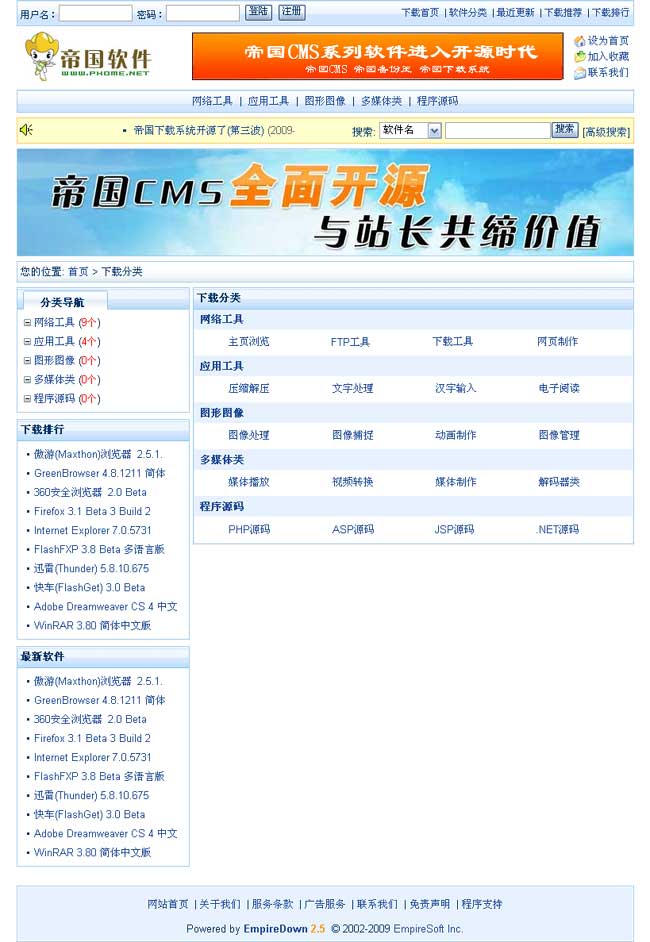 帝國(guó)下載系統(tǒng)2.5開源版前臺(tái)部分截圖