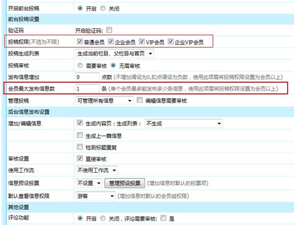 其它說明:開啟本功能必須將投稿權(quán)限設置為會員以上級別。