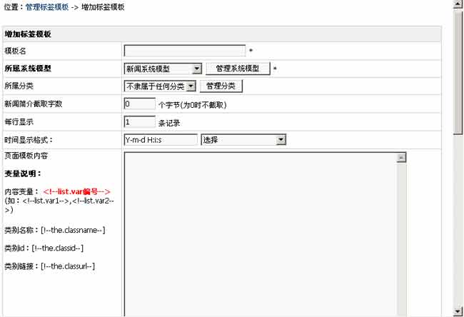 至于更多鏈接是:“[!--the.classname--]”、“[!--the.classurl--]”(也就是“頁面模板內(nèi)容”里有效) |