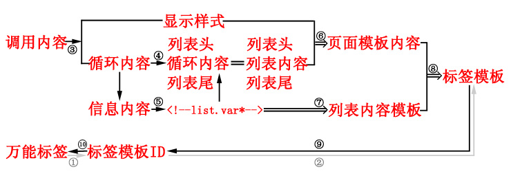 其中循環(huán)的信息內(nèi)容用列表內(nèi)容變量<!--list.var*-->表示。 |