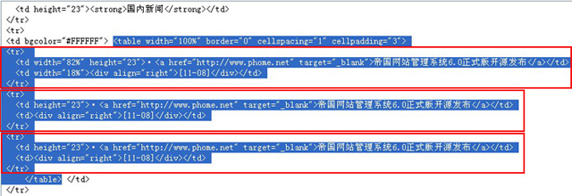 然后,在循環(huán)內(nèi)容的頂部和底部,分別加上列表頭[!--empirenews.listtemp--]和列表尾[!--empirenews.listtemp--]