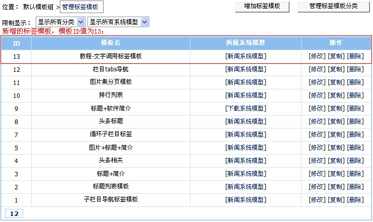 即標簽?zāi)0宓腎D值,是我們在帝國CMS后臺增加標簽?zāi)0搴,由CMS系統(tǒng)自動分配的。一個標簽?zāi)0鍖?yīng)一個ID。