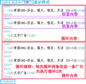 顯示樣式:在調(diào)用內(nèi)容中,循環(huán)內(nèi)容以外的部分,就是循環(huán)內(nèi)容的顯示樣式。