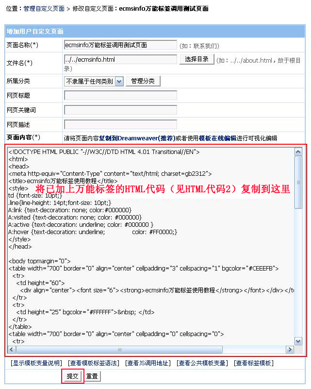 將"標簽?zāi)0錓D"值寫入"萬能標簽",至此,萬能標簽語法確定完畢。 |