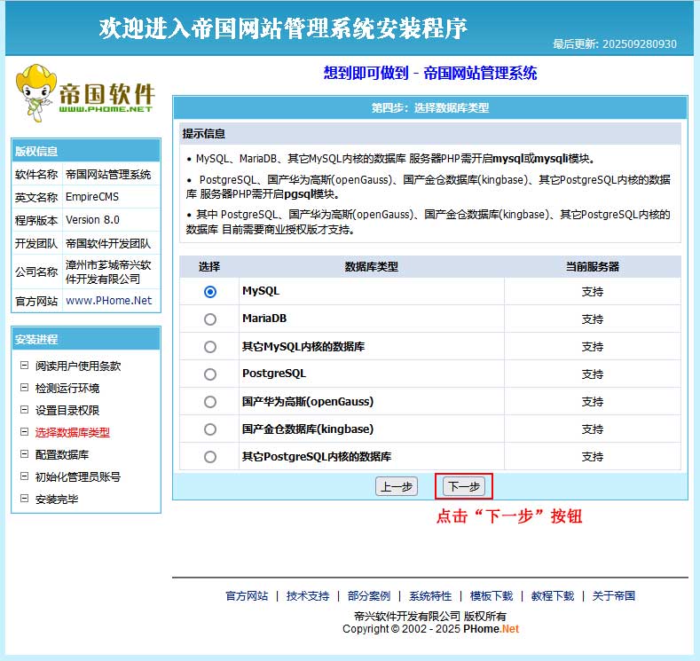 (注意事項(xiàng):使用 PHP8以上環(huán)境 或者 使用PostgreSQL 必須填寫已建好的數(shù)據(jù)庫名。) |