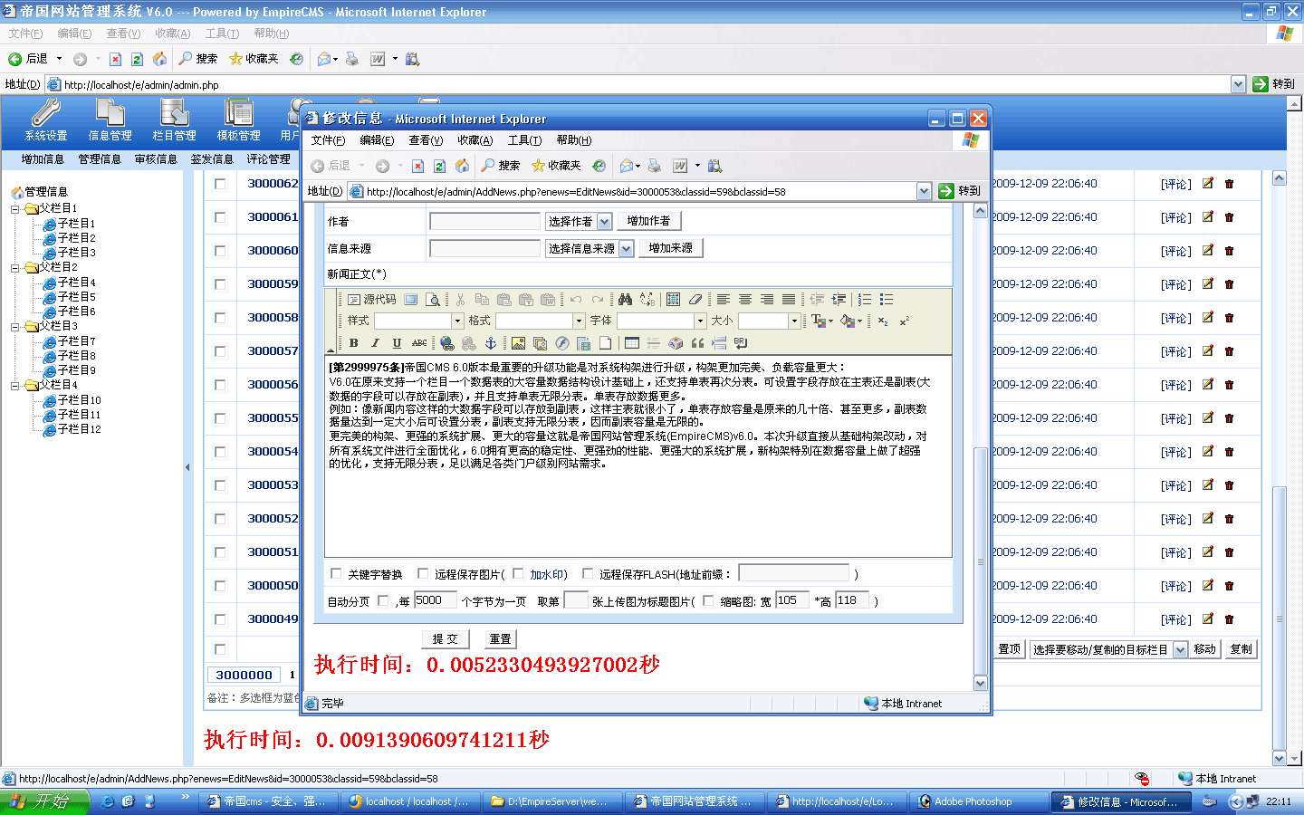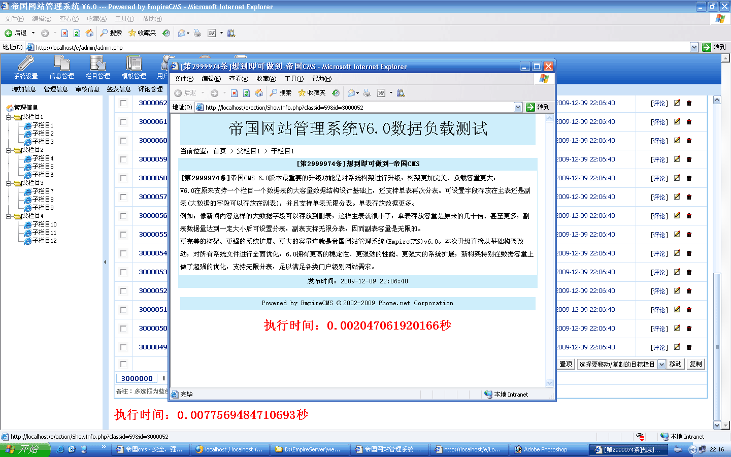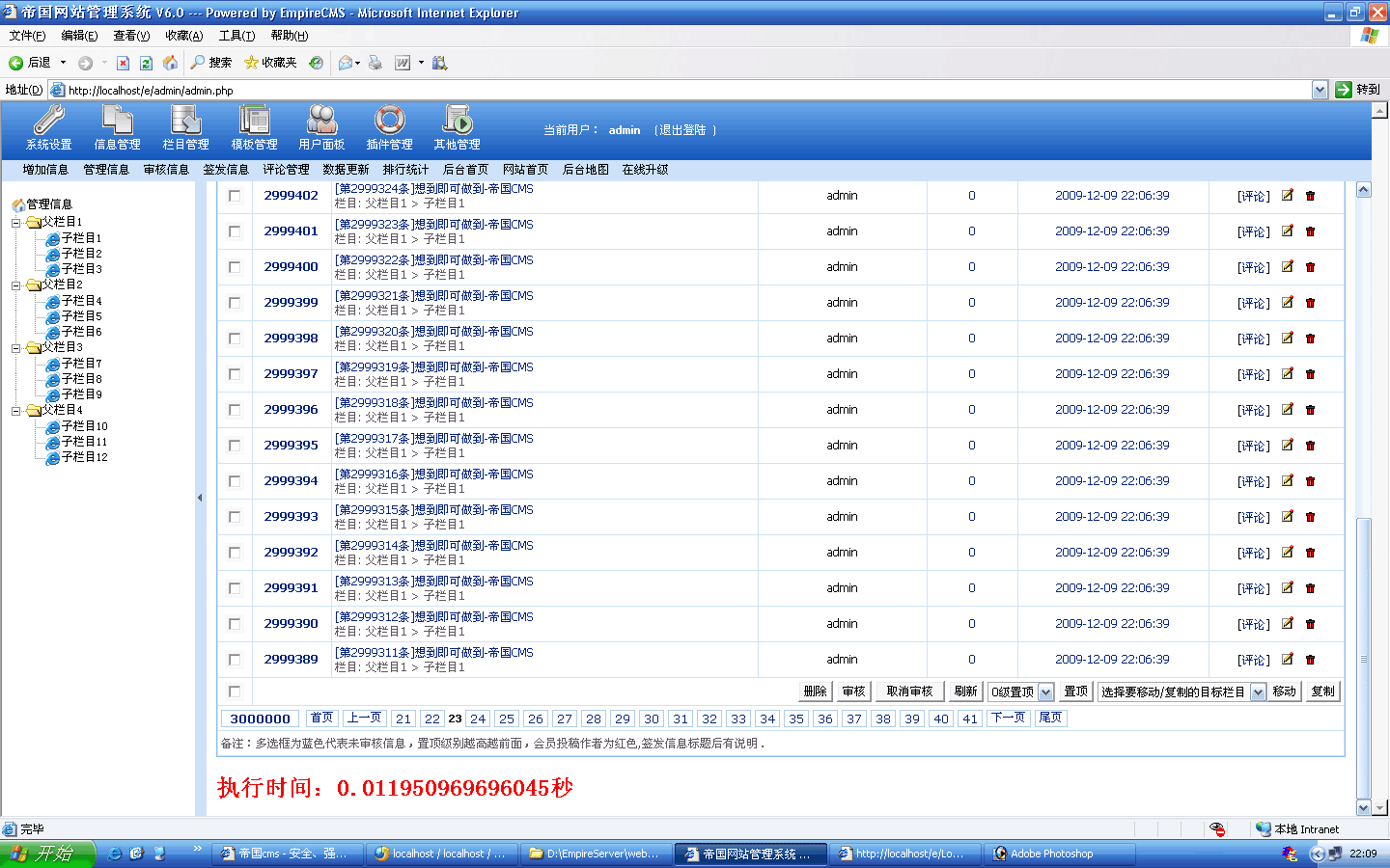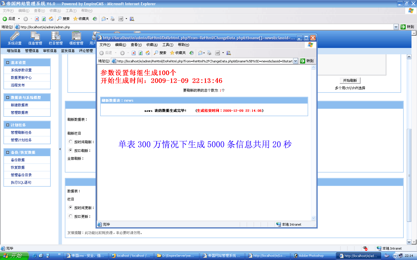 ![]() 生成過(guò)程截圖: ![]() 5000條生成時(shí)間:20秒 生成后的欄目目錄:(差點(diǎn)忘了截圖-_-!) |
