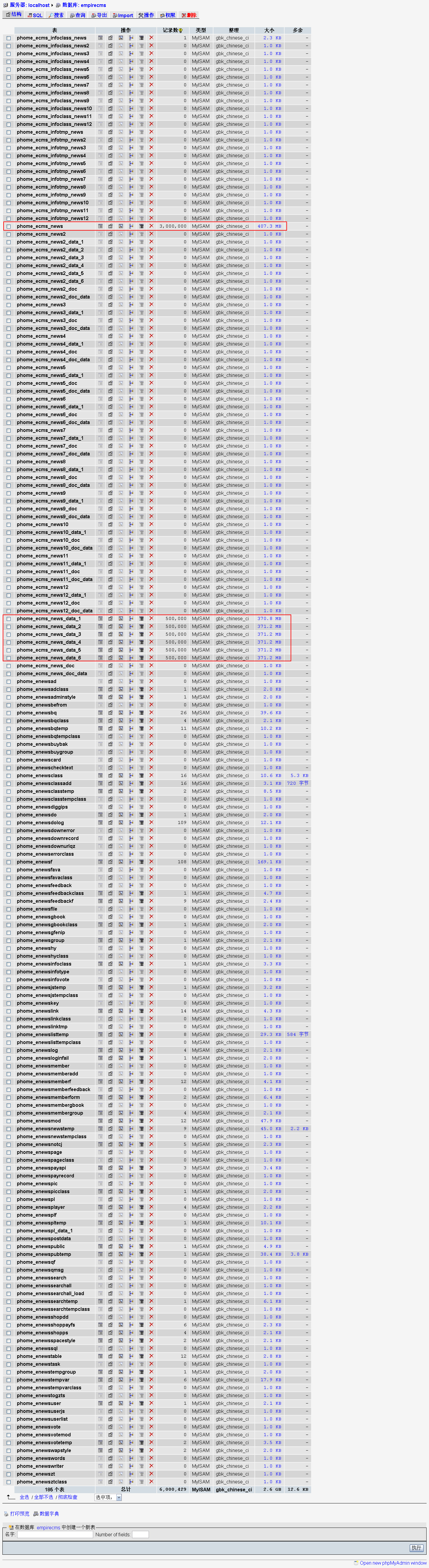 | 2千萬(wàn)數(shù)據(jù)、17.3GB數(shù)據(jù)庫(kù)用帝國(guó)CMS6.0分表合理存放(第六頁(yè)) |