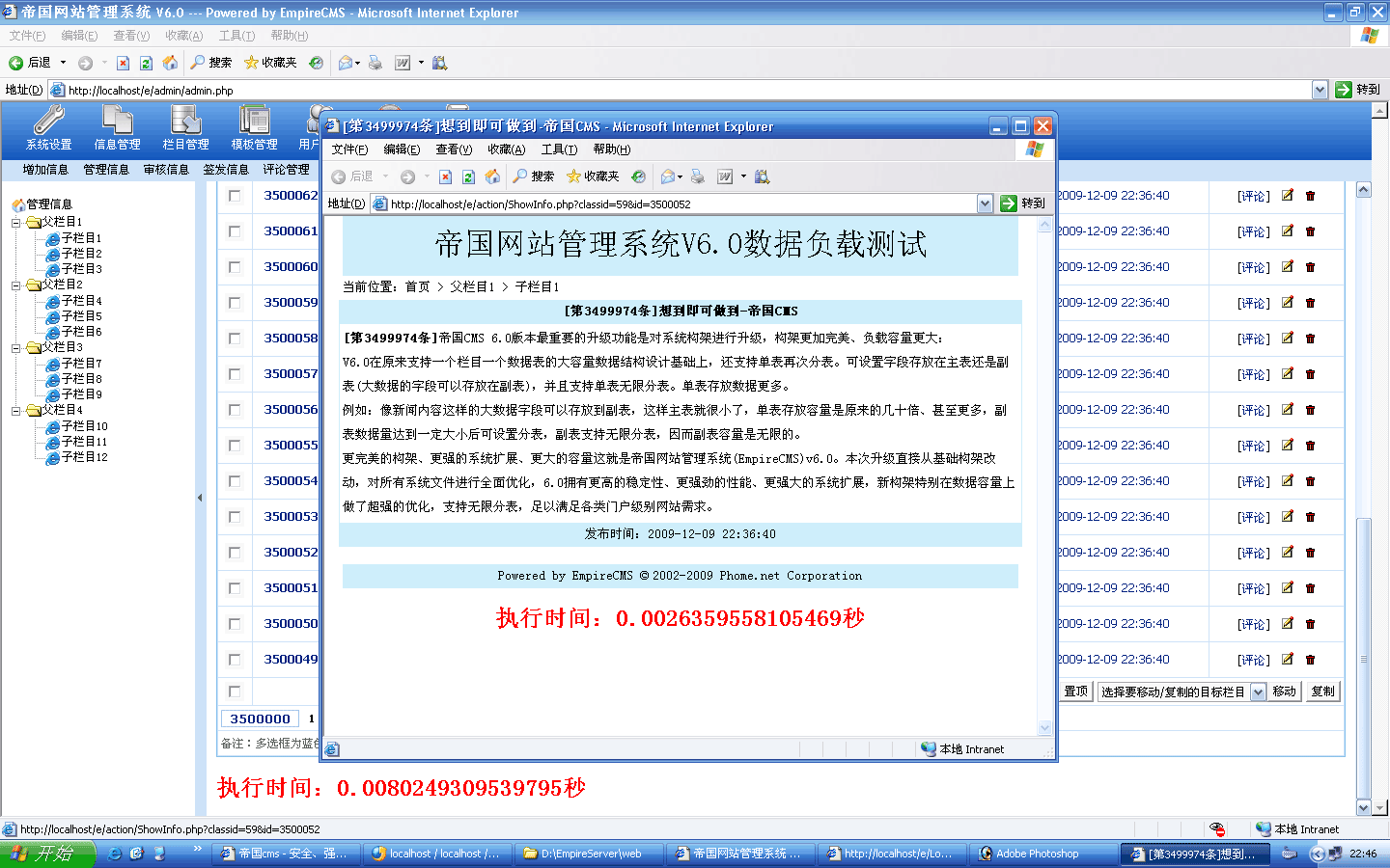 ![]() 生成過程截圖: ![]() 5000條生成時(shí)間:19秒 生成后的欄目目錄:(又差點(diǎn)忘了截圖-_-!) |