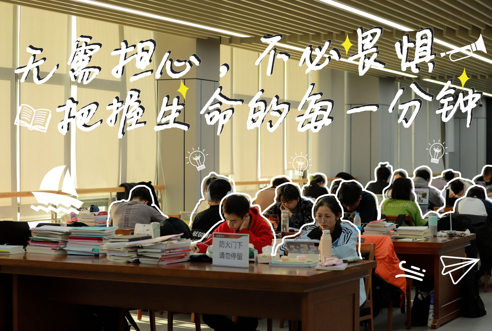 照在每一個奮斗的小燕子翻動的書頁上