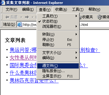 | 6、點擊采集的內容頁頁面并查看源文件:http://www.tpydc.com/tmp/cjpage/page4.html |