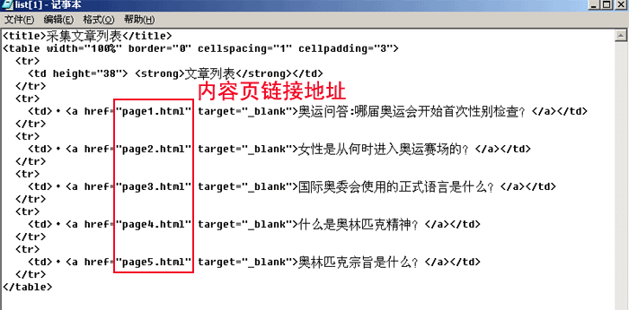 | (3)、由列表頁的源代碼:“<a href="page1.html" target="_blank">”,我們得出“內容頁地址前綴”為:http://www.tpydc.com/tmp/cjpage/ |
