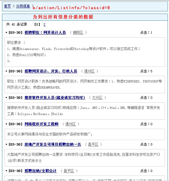 2、假設(shè)“e/action/ListInfo/?classid=9”顯示出的是所有信息分類欄目的數(shù)據(jù)。