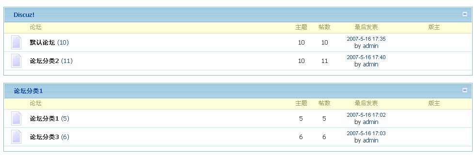 ·舉例說(shuō)明:調(diào)用DISCUZ論壇貼子 1、下圖中是本地DISCUZ的版塊與貼子。 圖1:(版塊列表)