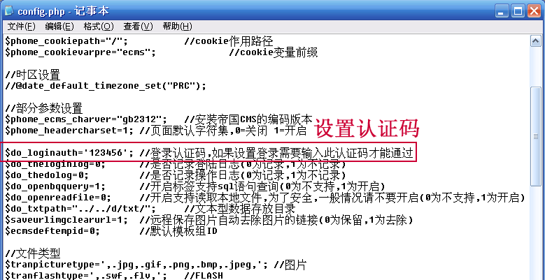 認證碼設(shè)置可配置e/class/config.php文件的“$do_loginauth”參數(shù),如圖: