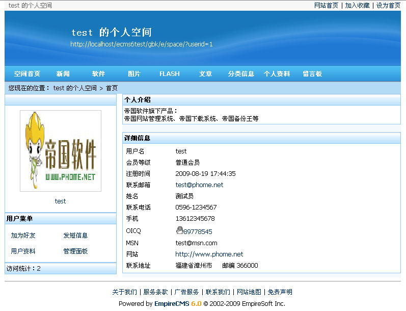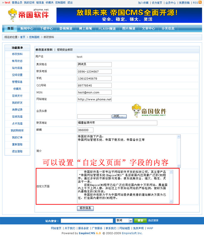 帝國CMS 6.0功能解密之會員空間自定義單頁面