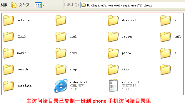 把目錄和文件粘貼到手機(jī)訪問(wèn)端“phone”目錄: