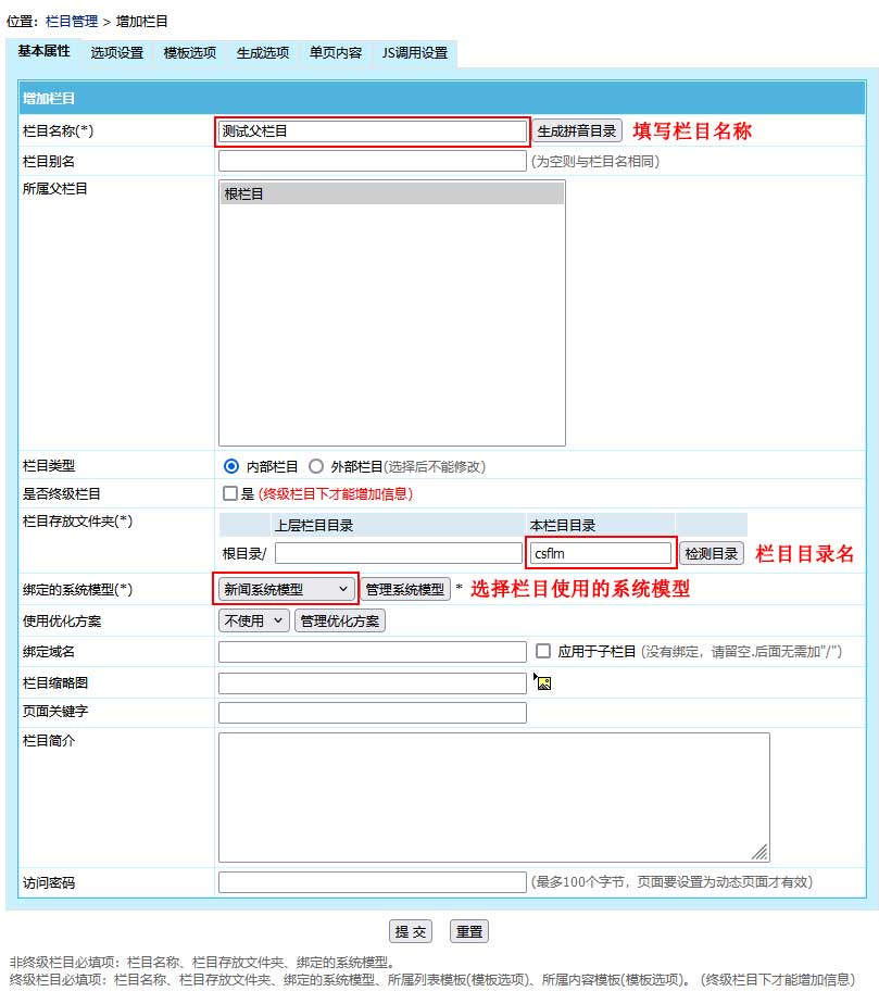 欄目即對(duì)網(wǎng)站的內(nèi)容歸類,帝國(guó)CMS支持無(wú)限級(jí)欄目分類。本文主要介紹增加欄目的基本設(shè)置。