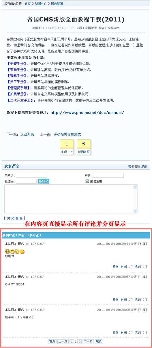插件介紹:帝國(guó)CMS的內(nèi)容頁(yè)評(píng)論AJAX分頁(yè)顯示插件,可在靜態(tài)內(nèi)容頁(yè)顯示所有評(píng)論及分頁(yè)顯示。