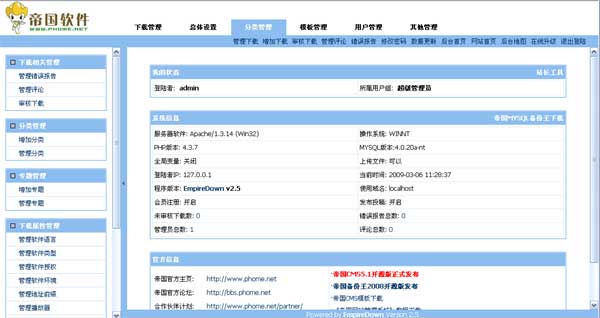 帝國(guó)下載系統(tǒng)2.5開源版升級(jí)功能列表