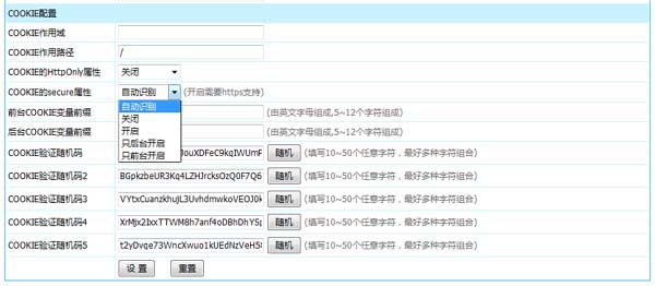 2、COOKIE信息保存支持設(shè)置secure屬性,后臺直接設(shè)置。開啟后只有https模式下才能獲取COOKIE信息,更安全。