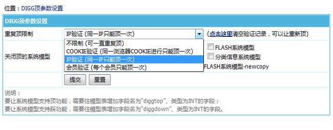 3、支持按COOKIE驗(yàn)證限制,同一瀏覽器COOKIE只能頂一次(同一信息)。