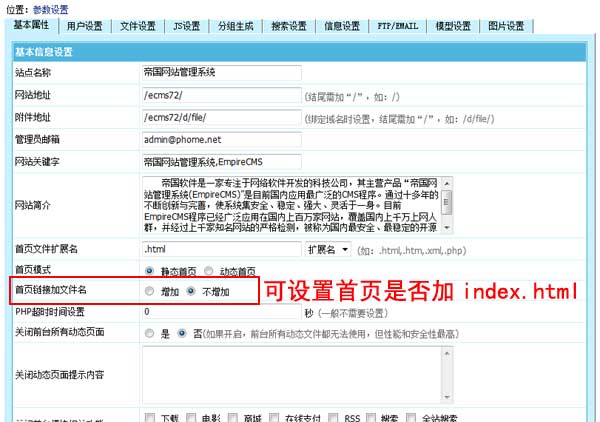 帝國CMS7.2導(dǎo)航首頁鏈接可設(shè)置是否加文件名,更人性化
