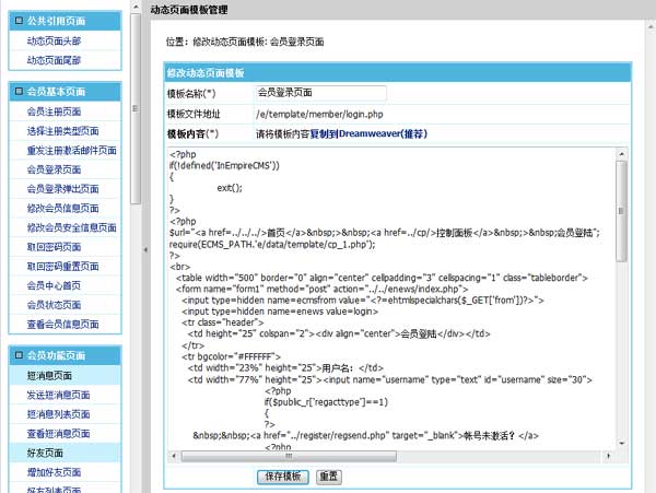 帝國CMS7.0動態(tài)頁面模板支持后臺直接修改,并且可分類分開管理,查找和修改相應(yīng)模板更方便。