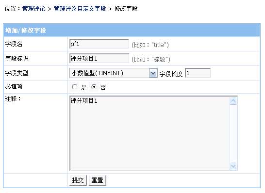 例子:通過自定義字段實(shí)現(xiàn)多項(xiàng)評(píng)分