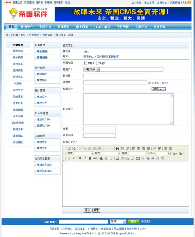 帝國CMS 6.0開源版升級(jí)功能部分截圖