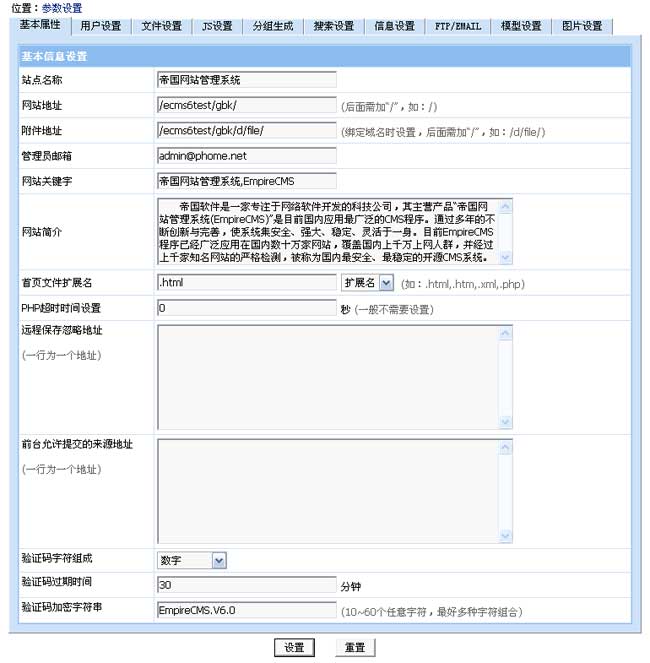 網(wǎng)站信息及驗(yàn)證碼設(shè)置