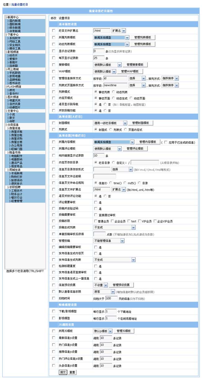 定時(shí)生成支持生成首頁/欄目頁/專題頁/自定義列表/自定義頁面/自定義JS,并且支持多選