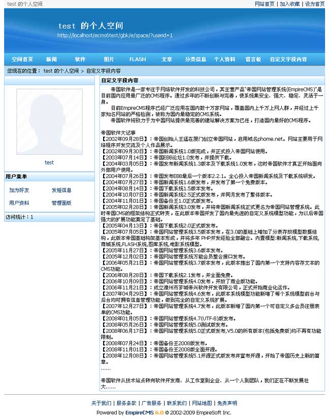 空間新增單頁信息功能,可以顯示會(huì)員表某一個(gè)自定義字段內(nèi)容作為單頁顯示的內(nèi)容