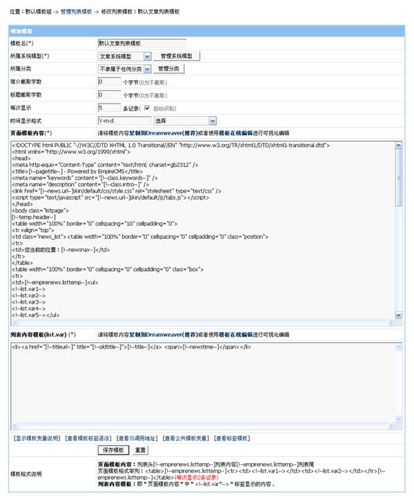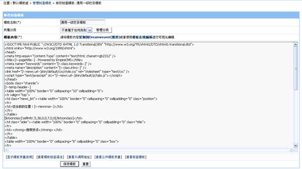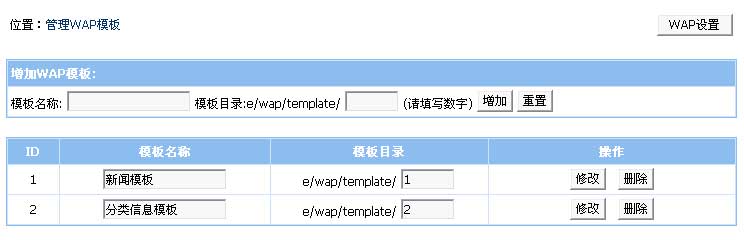 欄目選擇使用的WAP模板,不同欄目可設(shè)置不同的WAP模板