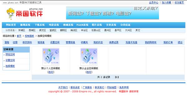 (注:后臺增加的空間模板都可以在這里選擇)